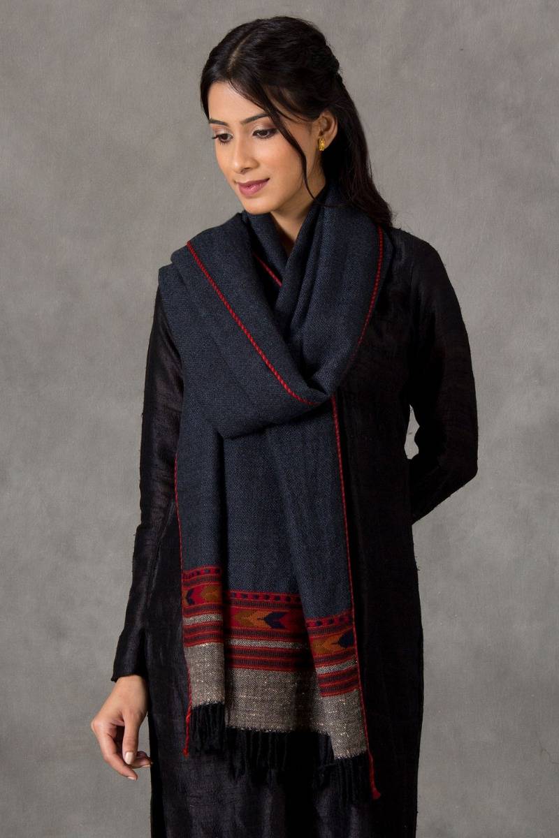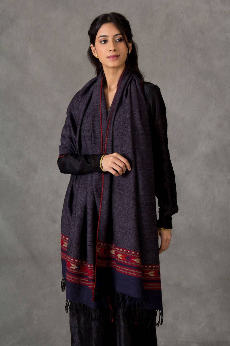 Description: This woolen shawl brings alive the art of handloom weaving that exceeds aesthetic appeal....