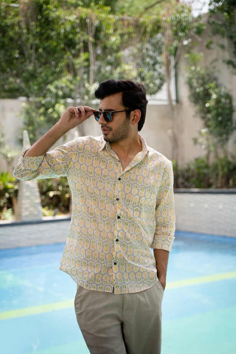 Description: This pure cotton summer shirt almost reminds one of a rich sunflower field. Add...