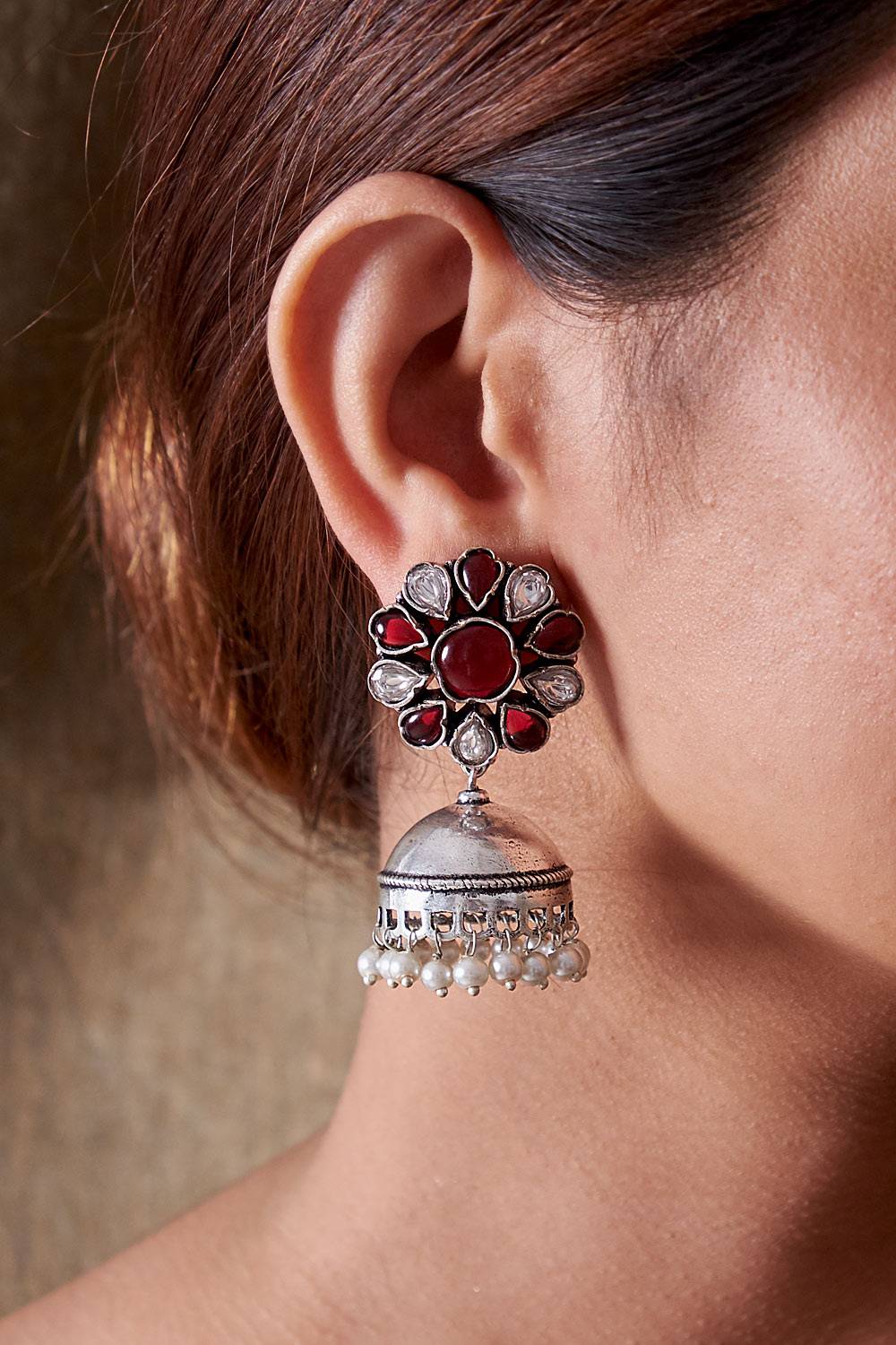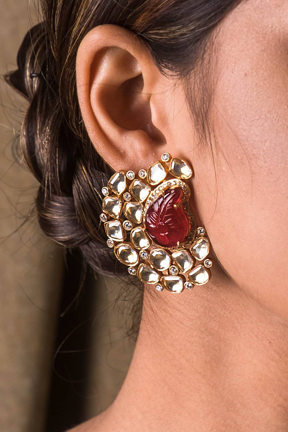 Abha Crimson EarringsDescription:The intricate bird motif unites seamlessly with the regal charm of this pair...