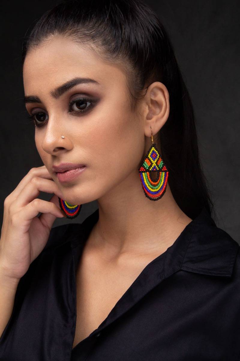 Panchmahal EarringsDescription:A riot of colours, these hand-strung earrings resemble the calming beauty of a falling...