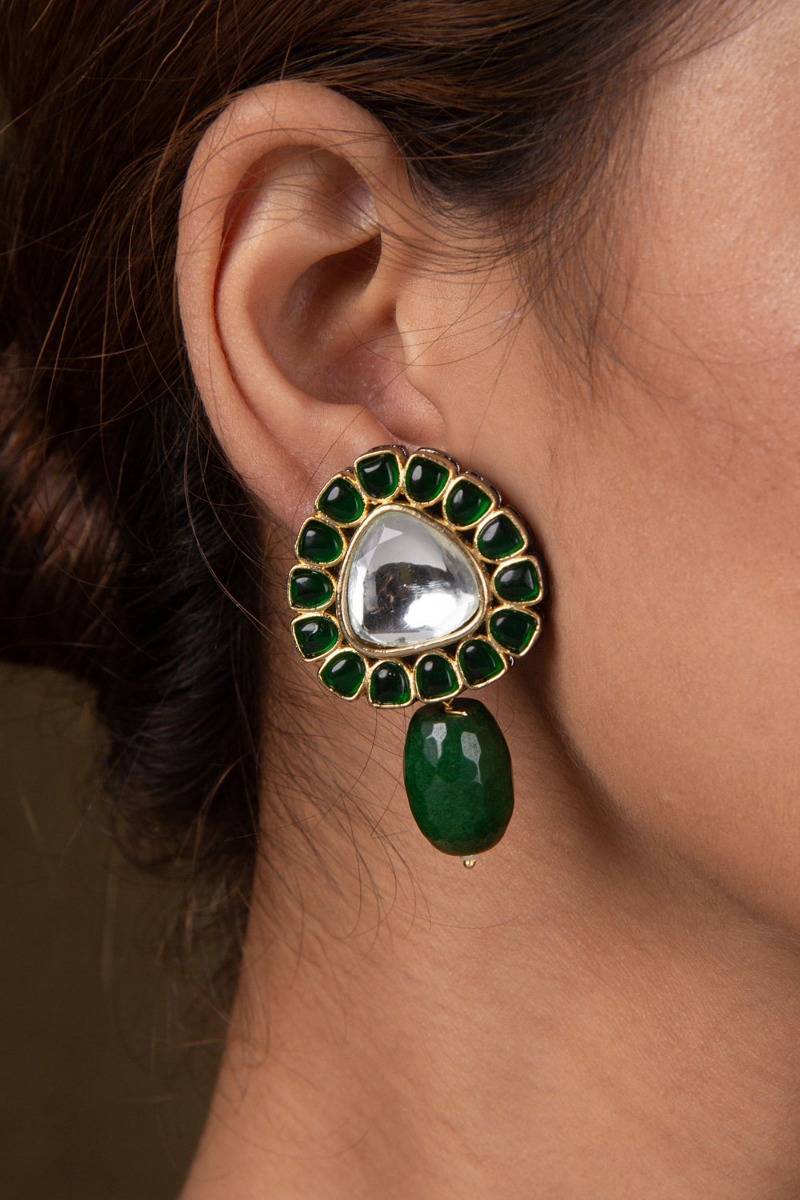 Meenakshi Emerald Coloured EarringsDescription: The royal motif at the center of the earrings will transport you...