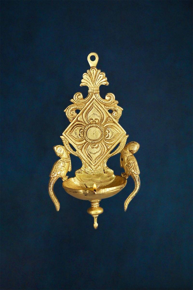 Description: Light a diya in this fascinating hanging oil lamp and add iridescent beauty to your...
