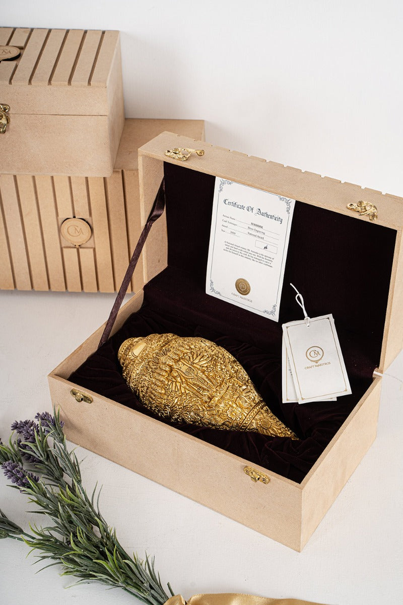 Adishakti Decorative Brass conch with Box