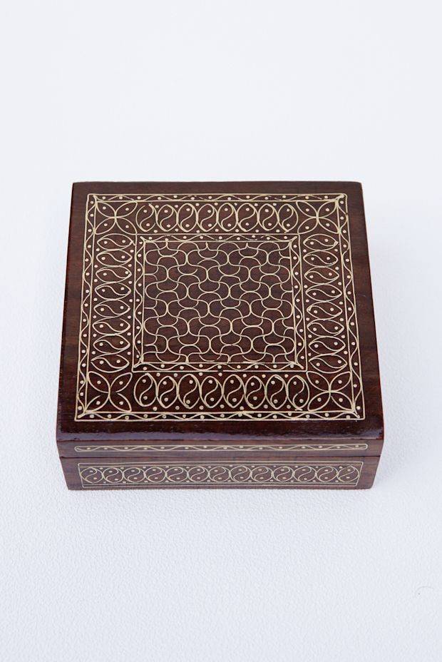 Design: With brass wire inlaid in a beautiful latticework, this Tarakashi box resembles patterns of the Islamic tradition. Bring some old-world charm in your house with this rosewood box.