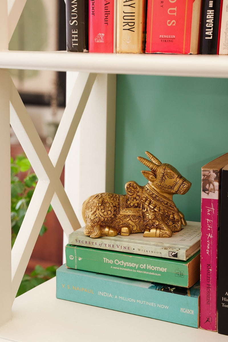Design: Carved in the figure of Shiva's mount, Nandi-the bull, this piece features ingenious craftsmanship and skill in the minute detailing in its garb and ornaments. These extremely fine details make for an exquisite piece.