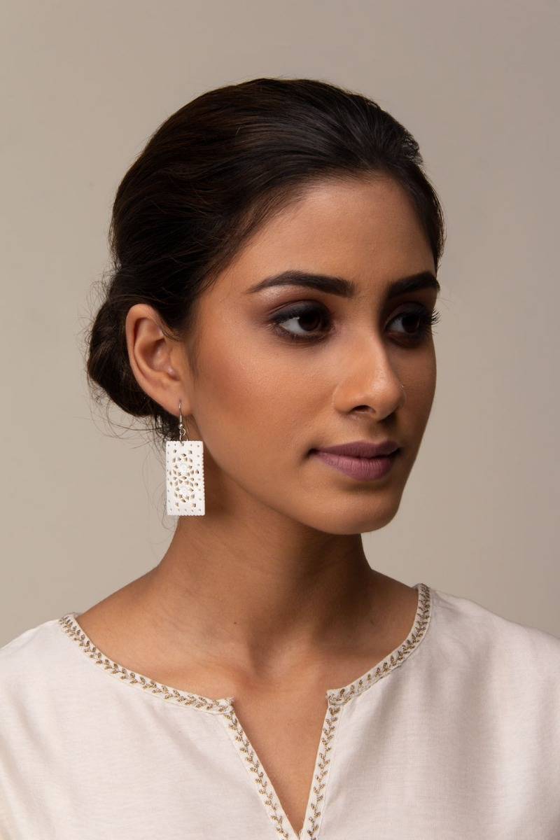 Design:Intricate jaali work was used in mashrabiyas in the 12th century, inspired by this breathtaking design are these earrings.