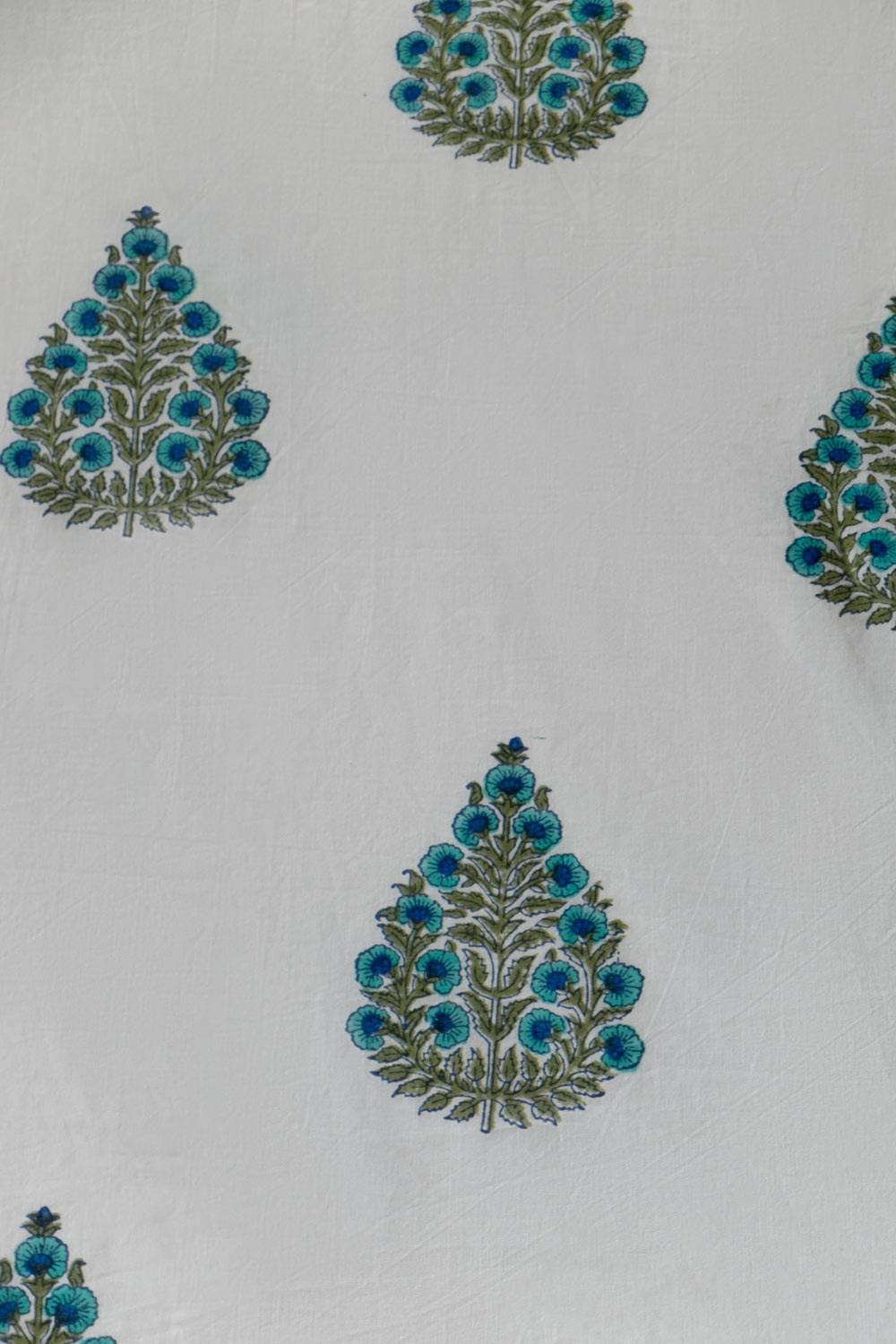Design: Blue striped border adds a tint of modernity to the otherwise traditional block printed bootis.