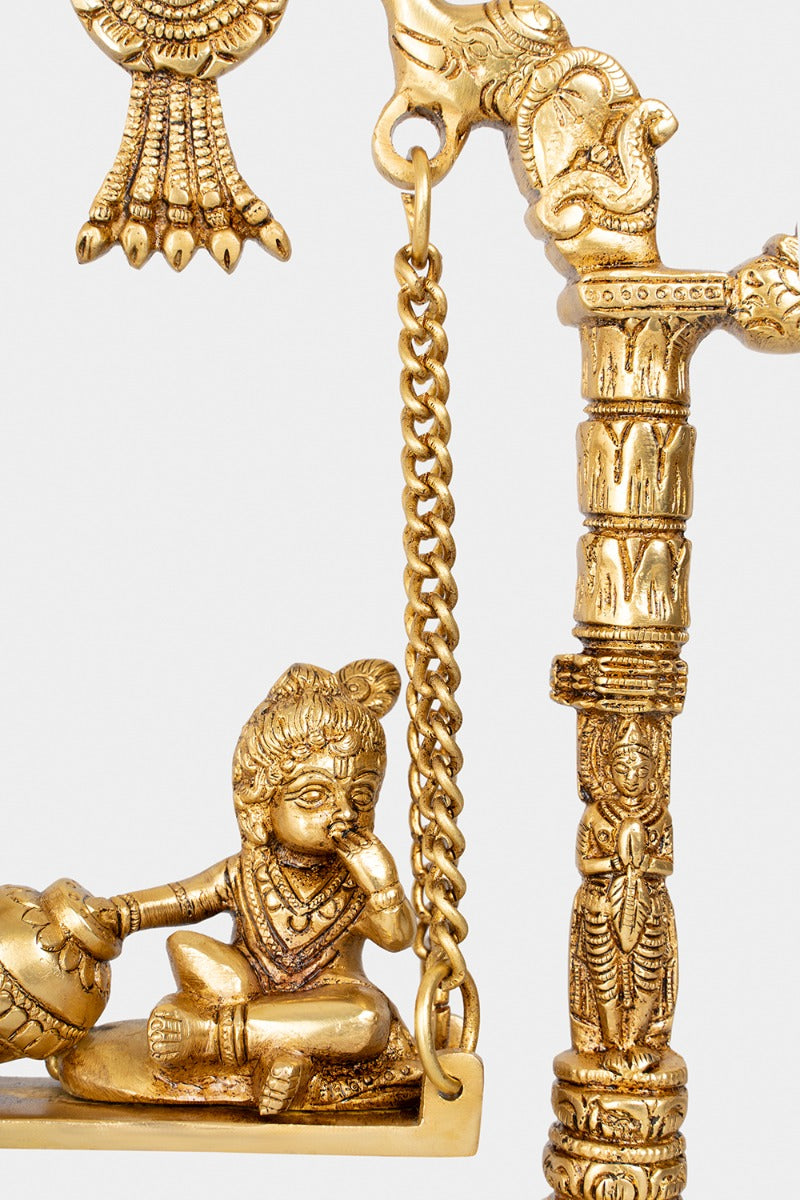 Design: Embrace the innocence and joy of Baby Krishna in this brass engraved Jhoola (swing). The intricate craftsmanship by our master artisan captures the essence of Krishna's playful nature.