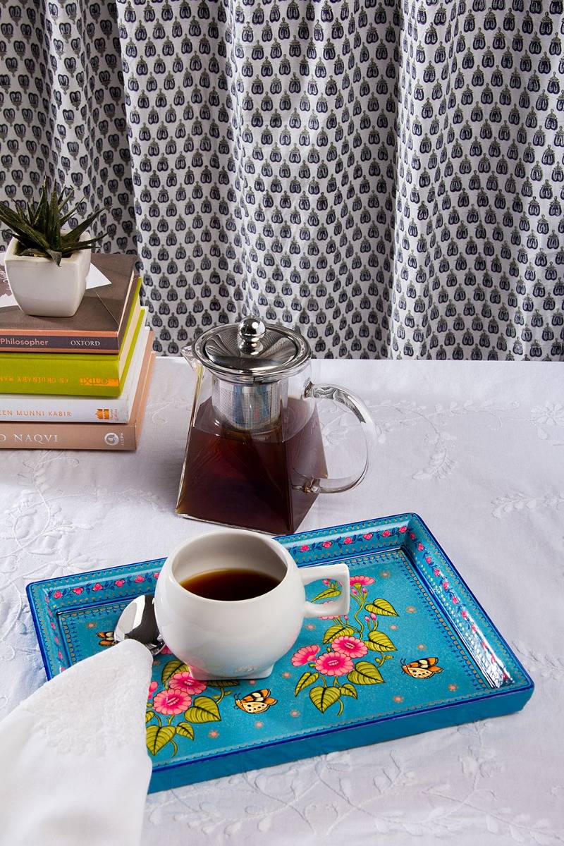 Description: Use this charismatic paper mache tray as a functional server or as a decorative piece for your coffee table.