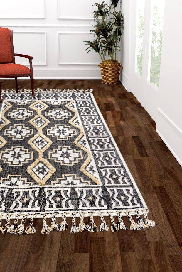 Design: Set in classic shades of brown and charcoal grey, this rug will bring a classic rustic vibe to your house. With fine patterns sprawling across and an elegant border, this rug is remarkable.