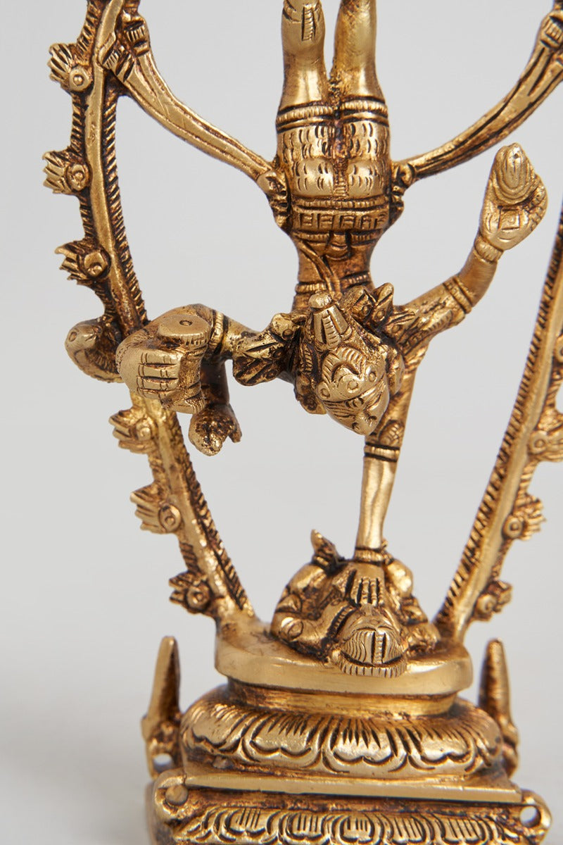 Design: Get captivated by this brass sculpture showcasing the iconic reverse Nataraj, capturing the cosmic dance of Lord Shiva. This piece has been handcrafted by India’s finest master artisans.