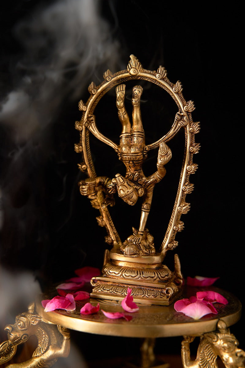 Description: Experience the cosmic energy with this handcrafted brass sculpture. The intricate detailing and symbolic representation inspire a sense of dynamism and spiritual awakening, making it a perfect addition to your sacred space or as a conversation-starting centerpiece.