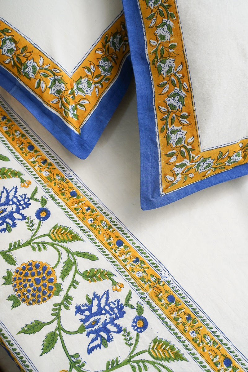 Description: After a long day, get welcomed by the finesse and skilled craftsmanship of our hand block printed bedsheet.