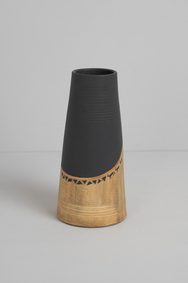 Description: Handcrafted in clay and hand-painted by Indian awardee artisans, this gorgeous monotone vase can be a charming addition to your home this summer! Its beautiful minimalistic design and hand-painted detailing also makes it the ideal table-top accessory for both contemporary and traditional spaces.
