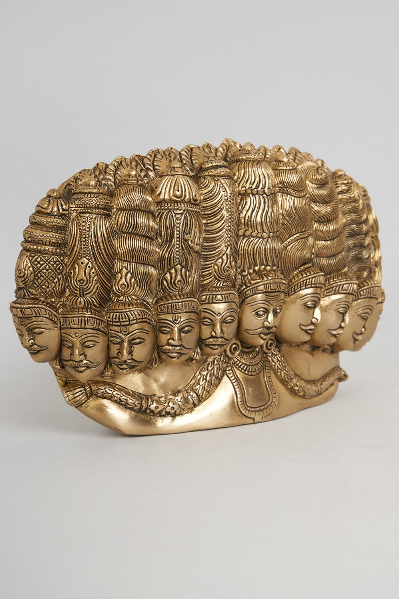 Design: A captivating brass art piece depicting the enigmatic tale of Ravan , intricately sculpted with fine details.