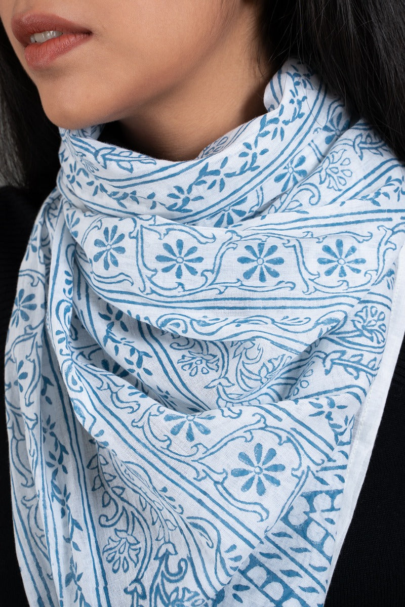 Design: The stole is in two beautiful and calming shades of blue and white. With a block printing technique, nature-inspired patterns form a charming print that's feminine and fresh in appeal!