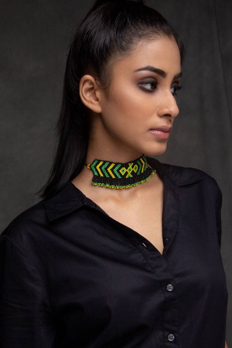 Description: Carefully hand-strung like a tapestry with the use of minute beads and fine threads, this necklace is a piece of the rich Gujarati tradition.