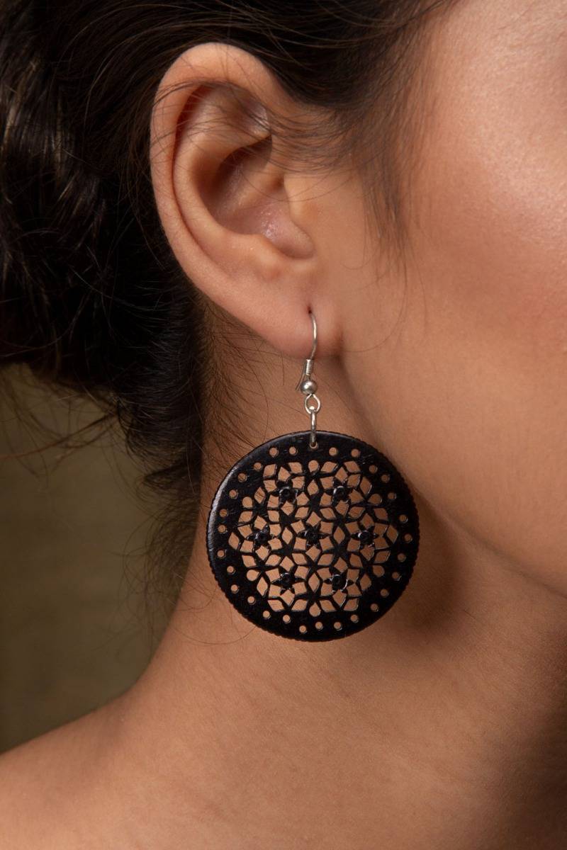 Description: With each hole handcrafted intricately, this stunning black earring is a beautiful amalgamation of the ancient craft of bone carving and contemporary taste.