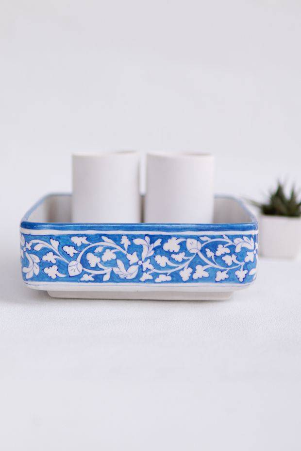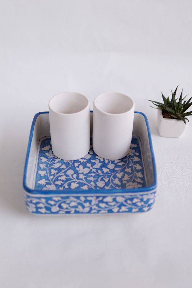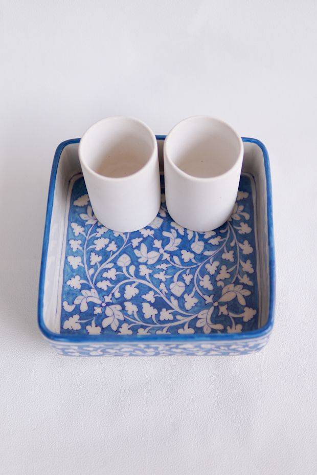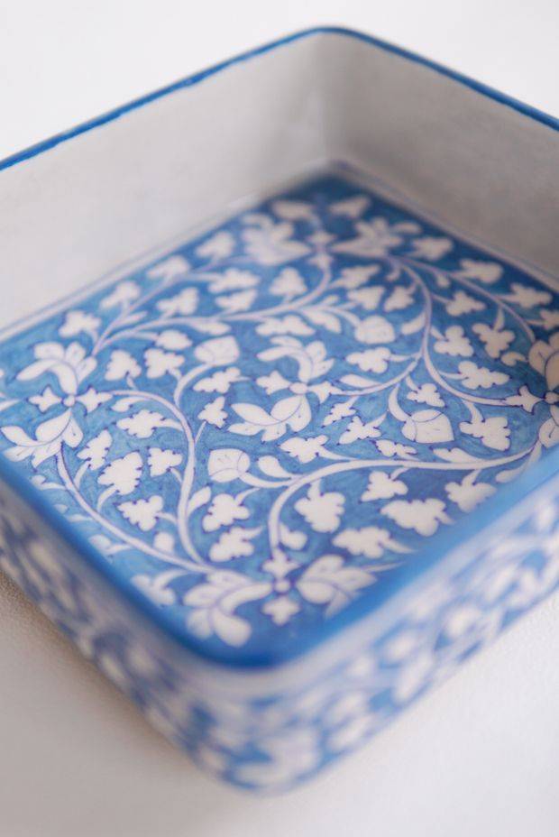 Description: Serve your any dish in this charming blue-pottery square tray. Perfect for a meal with loved ones!