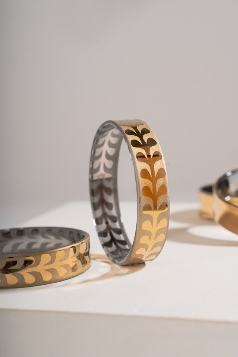 Design: These petite bangles come in beautiful leafy designs to add an elegant feminine touch to your attire. With a mixture of matte and shine, this glass art bangle is a stealer.