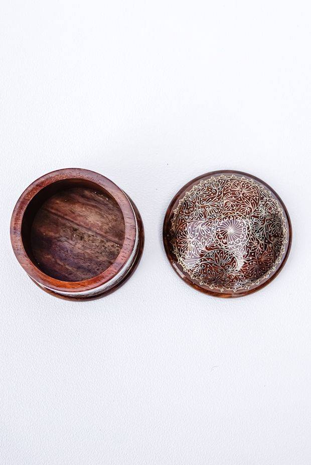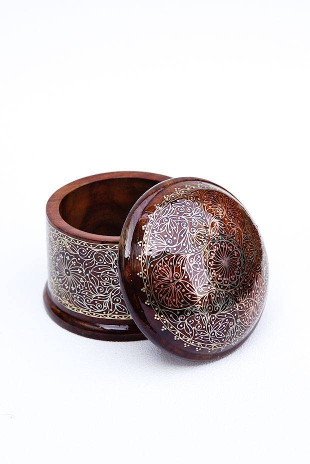 Design: Extremely fine floral pattern that adorns this rosewood box is the influence of the Mughal period on the technique of Tarakashi. The use of three kinds of wires to inlay a detailed design in a box this small makes the product even more extraordinary.