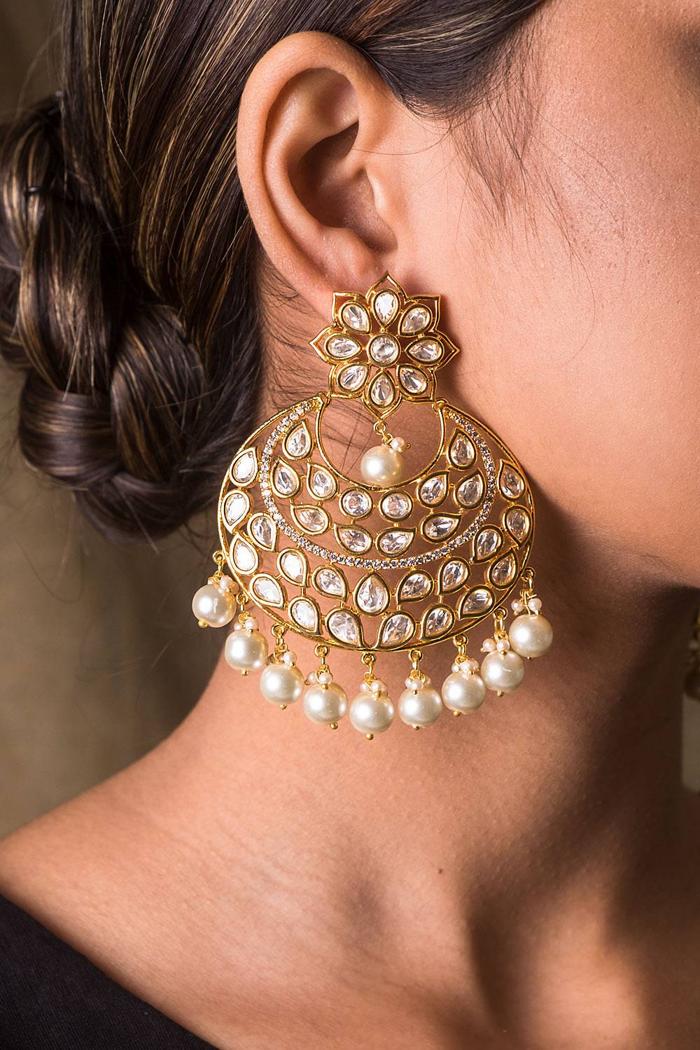 Description: Inspired by the chandbalis which originated under the Nizams in Hyderabad, these brilliant earrings are a sight to behold.