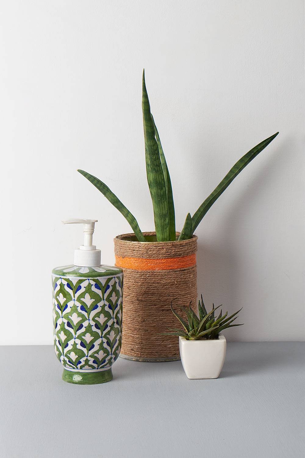 Design: Not an easy colour to achieve in the craft of Blue Pottery, this soap dispenser features intricate patterns against an olive base.