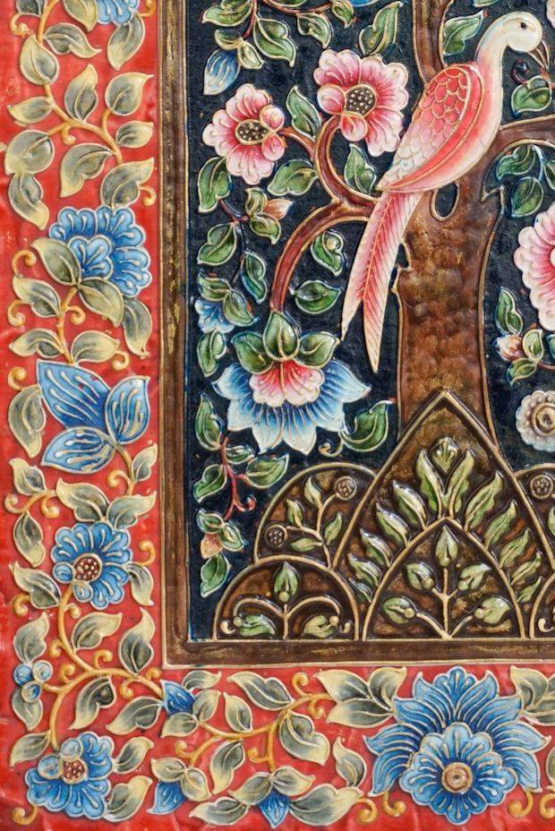 Design: A blend of traditional designs, floral artwork and layers of clay creates an interesting piece of relief work.