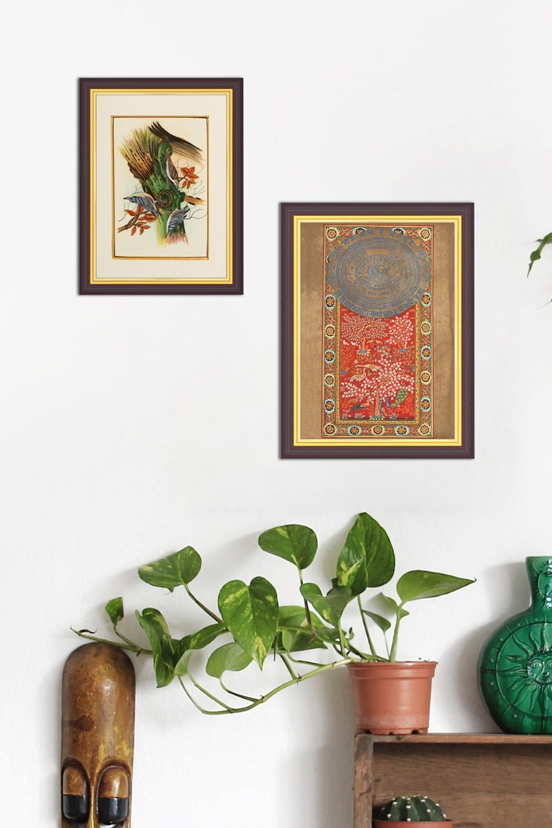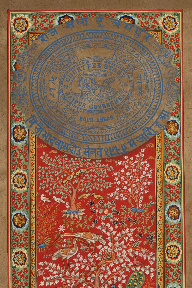 Design :Hand Painted on an aged stamp paper you can find a beautiful scenery of lively birds and trees carefully surrounded by a unique border.