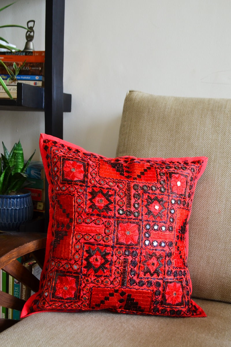 Design:Delicate mirror work accented with fine embroidery in black, this cushion cover is a delight to have.
