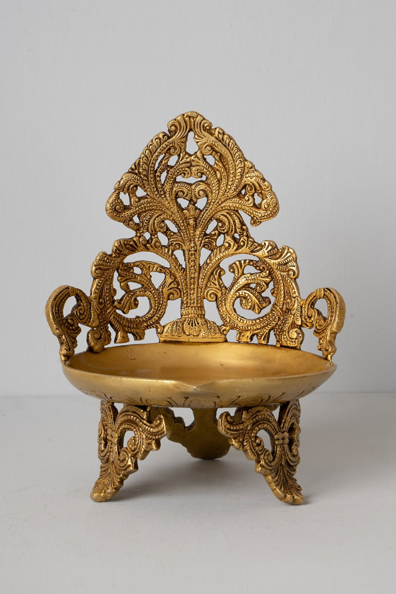 Design : An intricate web of radiating carvings finds itself moulded into this divine urli. Bring it home to give a sacred touch to your decor.