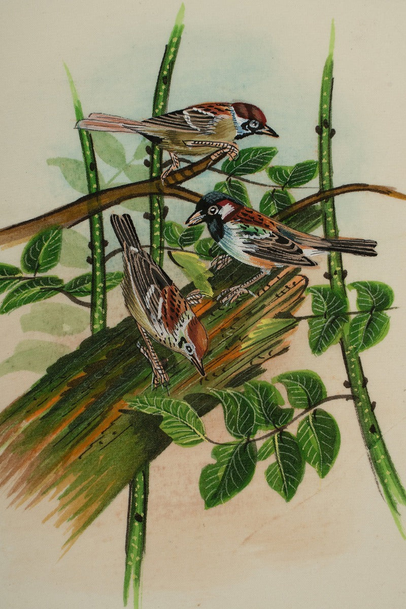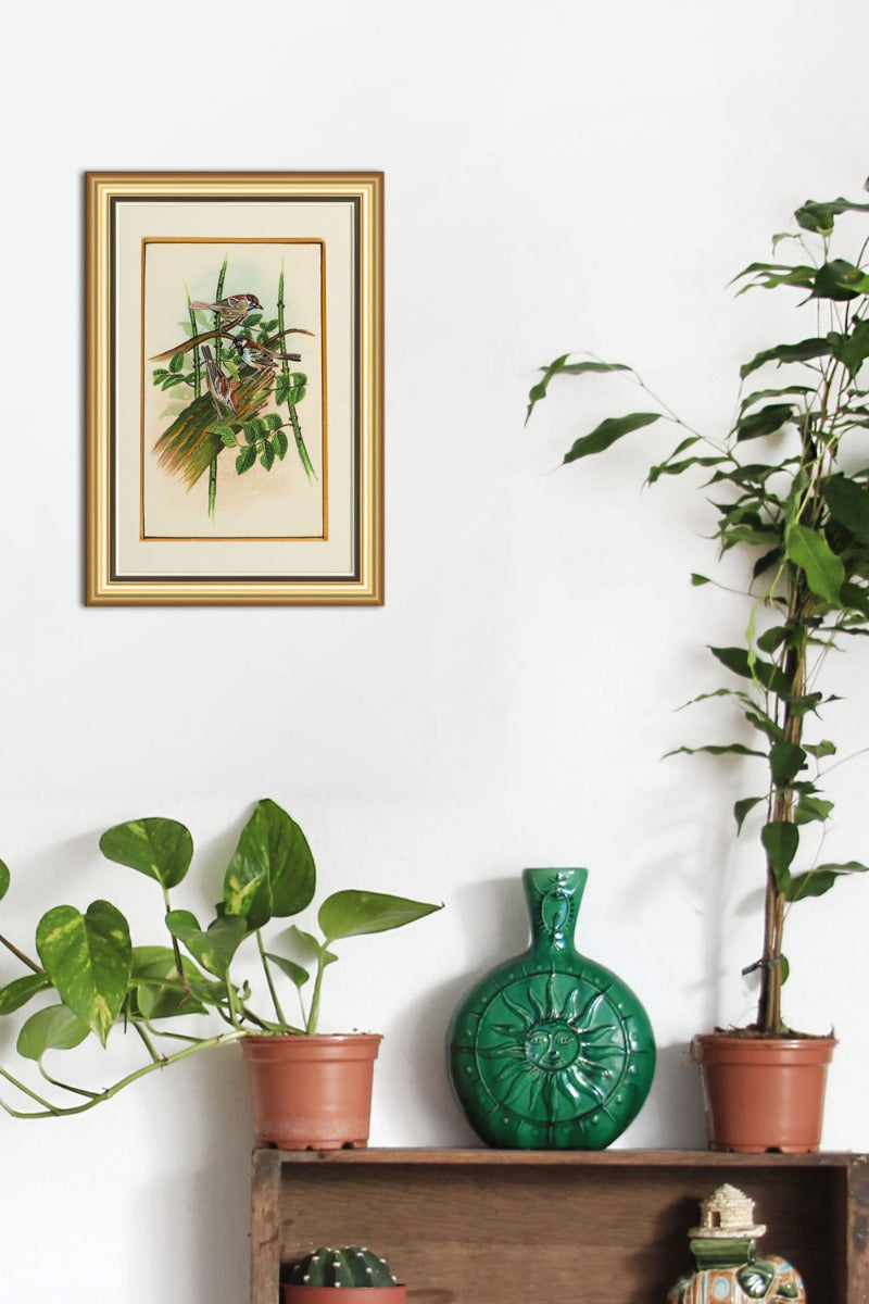 Design :This painting signifies a couple of sparrows nesting in their new habitat.