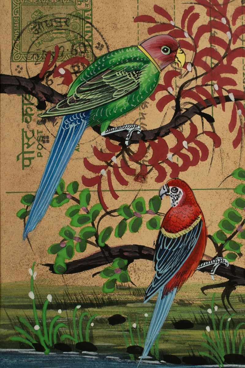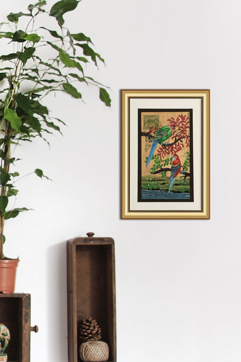 Design :This painting signifies a couple of macaws nesting in their new habitat.