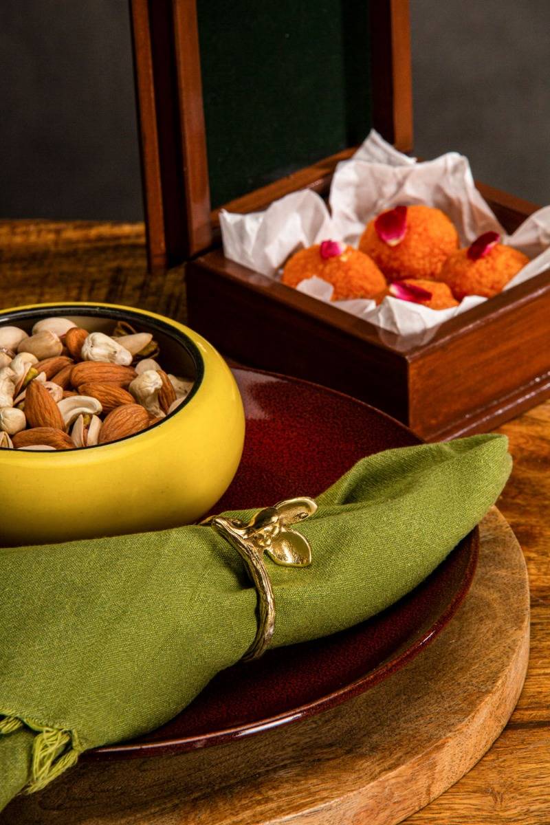 Design: Inspired by the spring season, our floral napkin rings are beautifully set in brass.
