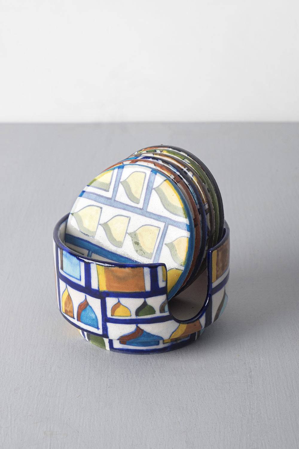Design: Inspired from the grand peaks of Taj Mahal, royal ceilings are hand-painted on this colourful coaster.