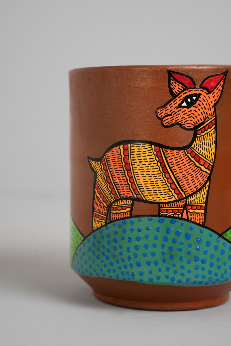 Description: Handcrafted in clay and hand-painted by Indian awardee artisans, these beautiful mugs come along a wooden tray. Enjoy a cup of tea or coffee with your favorite person, while admiring the gorgeousness of our Indian awardee artisans’ supreme artistry.