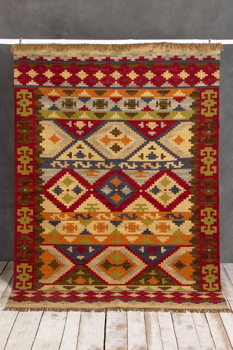 Design: Designed by skilled artisans from Mirzapur, this plush rug has been carefully woven together into a gorgeous work of multi-coloured patterns with an austere, fringed border.