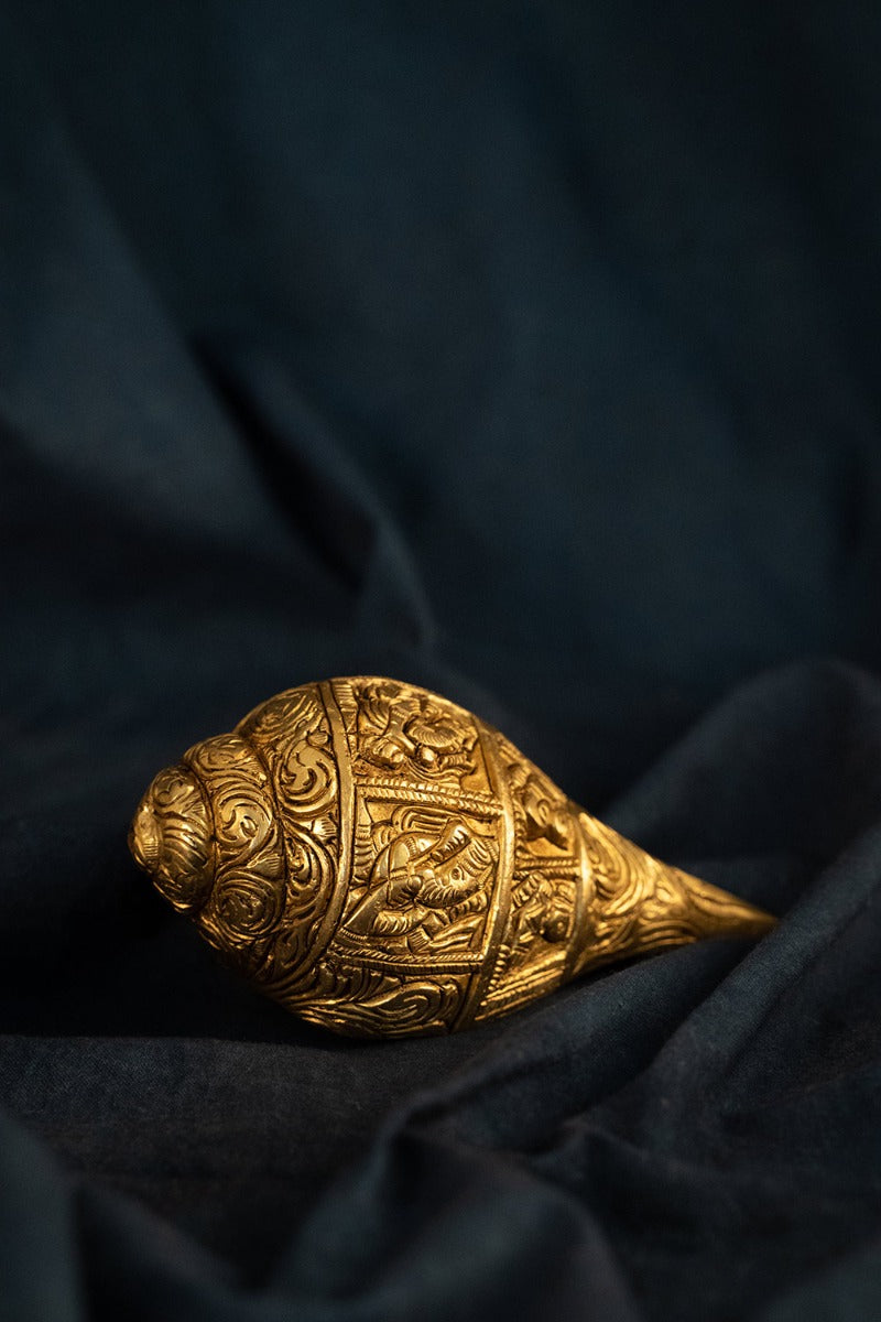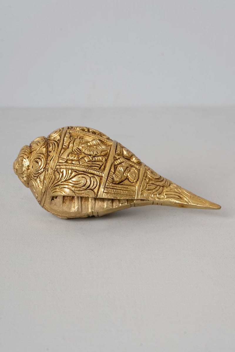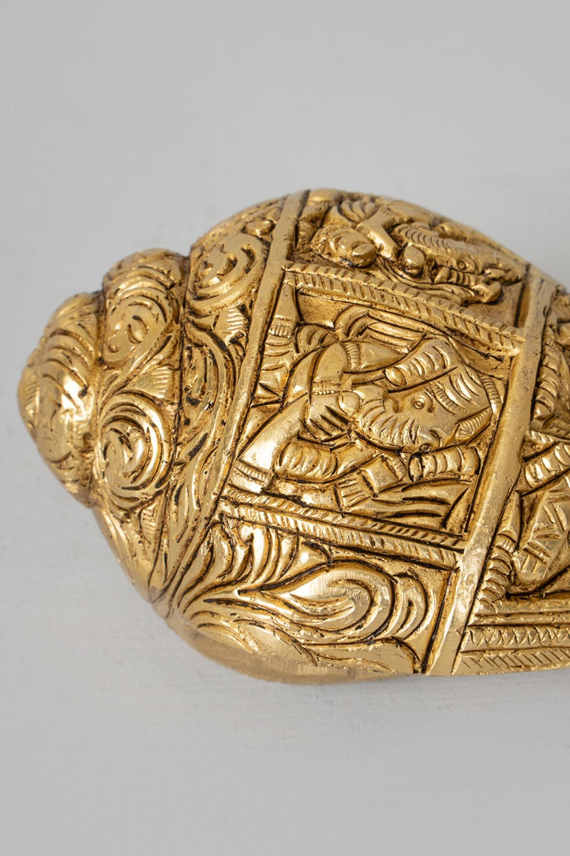 Design : Give an auspicious start to all your new beginnings with this finely engraved conch with intricate details.