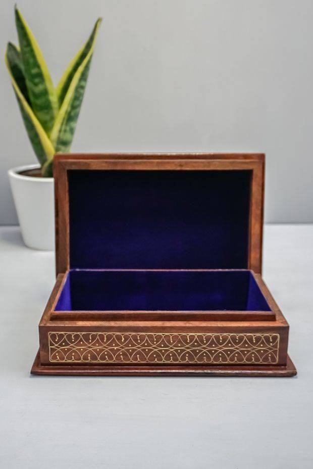 Design: The Islamic influence on Rajasthani Tarakashi brought with it fine detailed work, as exhibited in this rosewood box. With a classic wooden base and brilliant Tarakashi work, this box will bring a touch of heritage to your home.