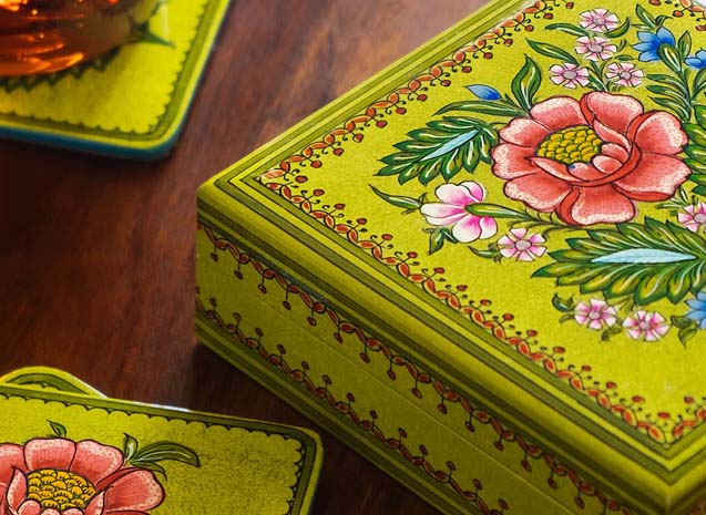 Nestled between the delicious smells of naan and kahwa lives the sophisticated craft of Kashmir Paper Mache.